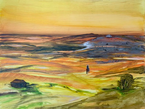 Mit Öl und/oder Acryl malte ich die weiten Landschaften der norwegischen „Tundra“ (Musik: Ola Gjeilo)und „Plainscape“( Musik: Peteris Vasks). Ich arbeitete mich durch das „Dark Land“( Musik von Koller/Mandel) von der Verdamnis bis zu „Lux Aeterna“,